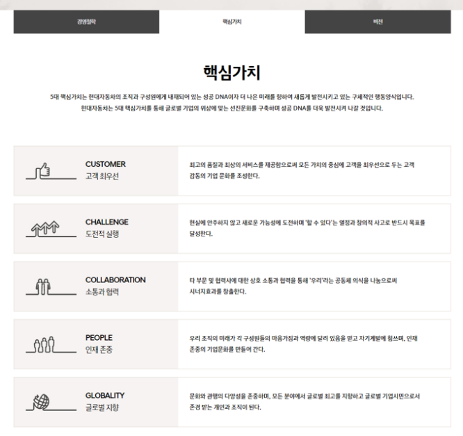 📊 현대자동차 분석 자료 (핵심가치, 비전, 인재상, 각종 사업 등)