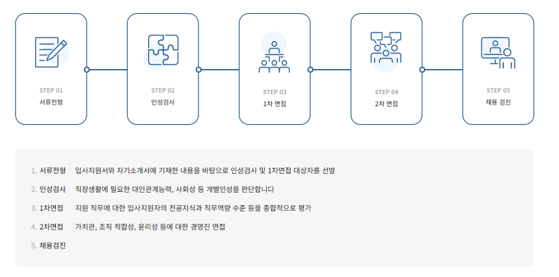 • 윤리 의식 & 리더십: 정직하고 투명한 자세로 윤리적 기준을 준수하며, 긍정적인 영향력을 발휘하는 인재