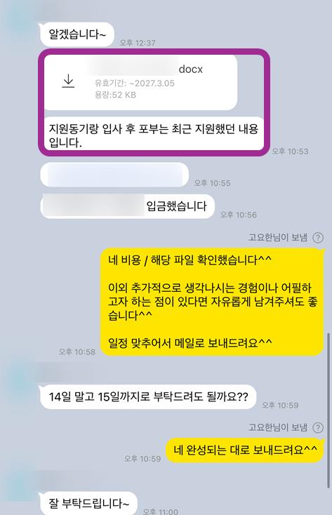 >> 2단계: 자료 공유 (이력서, 기존 자소서 초안, 관련 경험 자료 등)