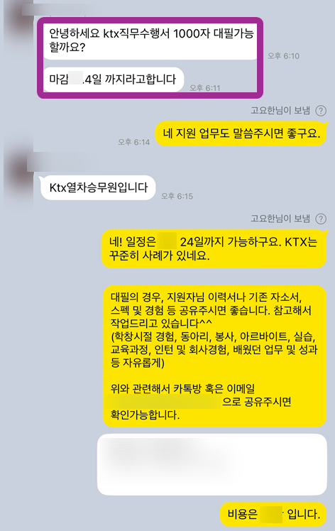 코레일 KTX 승무원 합격 자소서, 서류 합격률 높이는 대필 전략 (실제 사례 공개)