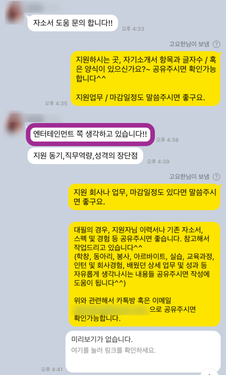 하이트진로 채용 합격 자소서, 자기소개서 첨삭 후기